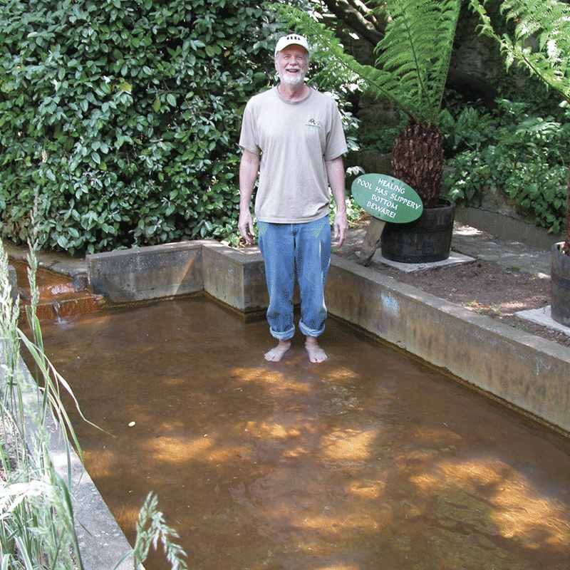 Below the first waterfall is Pilgrims’ Bath, which was the scene of healings in the 1700’s. At its peak, up to 10,000 people a day came seeking cures. The healing energies are still present and although the numbers are nothing like the past, many still come for this reason. (The bath is much shallower than the original.) The healing properties of the area come as much from the energy of the water as from the subtle spiritual energies of the grounds. Powerful ley lines, called the Michael and Mary lines, meet in the King Arthur’s Court area between the waterfall and Pilgrims’ Bath.