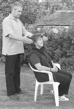 Obviously you should stop when your hands are very close to the person’s ears, or whenever the seated person asks you to take your hands away. Sometimes the seated person will feel a pressure around their head or considerable warmth building up; or it may make their ears feel tingly or hot. When you have completed this exercise, do share with each other what you felt, and then swap positions so you can experience it from the other perspective. I wouldn’t advise doing this more than a couple of times with the same person during a single session. The sensitivity of the aura becomes greater the more you do this, and subconsciously the seated person will try to put up greater barriers to push away the person infringing their space—sometimes enough to almost knock them off their feet! Whilst this might be seen as a fun thing to achieve, it can leave the seated person with a bit of a headache, or feeling slightly sick for a while, if it goes on too long.