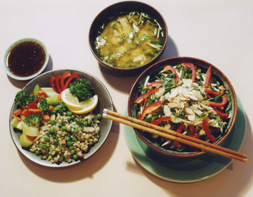 Any leftovers can easily be made into soup by covering with water, bringing to a boil, adding tamari soy sauce to taste, and simmering for five minutes.